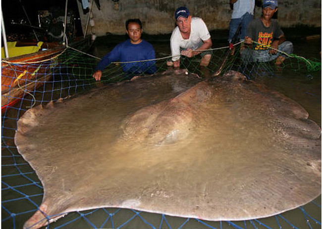 1. Giant StingrayGiant Stingray adalah hewan prasejarah air yang masih hidup sampai saat ini, ikan pari-pari ini adalah salah satu-satunya ikan pari air tawar yang terbesar dan paling berbahaya yang pernah ada di dunia.