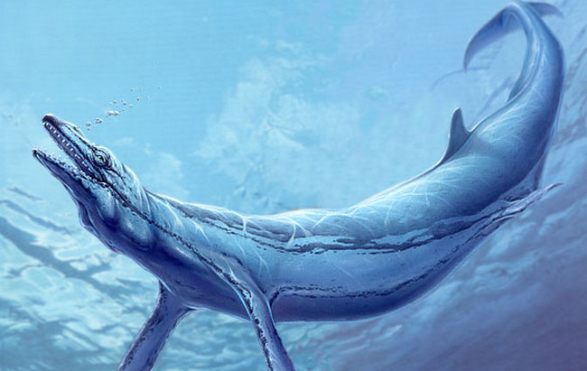 4. KronosaurusKronosaurus mempunyai leher yang pendek, seekor reptile laut pemakan daging sepanjang 30 kaki (9 meter). Ia mempunyai 4 sirip, dua di depan dan dua di dekat ekornya yang pendek. Kepalanya besar dengan rahang yang sangat kuat. Kepalanya bisa mencapai 9 kaki ( 2,7 meter), ini sekitar sepertiga panjang badannya. Beratnya dapat mencapai sekitar 20 ton. Giginya terdapat disekeliling rahangnya yang dapat memotong kulit dan cephalopods.