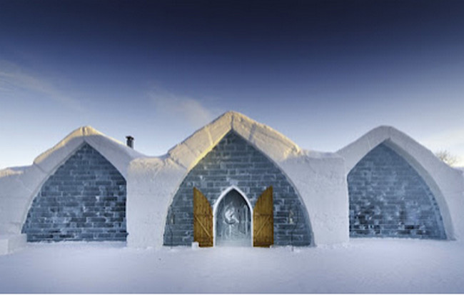 Meskipun dibangun dari salju dan es, Hotel de Glace di Quebec merupakan tempat yang hangat untuk ditinggali. Hotel ini memiliki 36 kamar dan merupakan hotel es satu-satunya di Amerika.