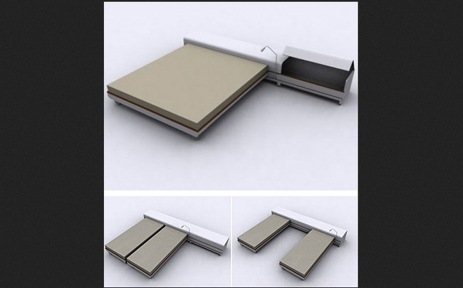 5. Single/Double in SecondsMengatasi dilema utama pemilik rumah itu, ini baru mewah tidur desain modular oleh desainer Swedia Marcia Hanvey Isaksson memungkinkan Anda langsung membagi tempat tidur ganda Anda menjadi dua single tanpa harus menghabiskan punggung Anda untuk itu. Desain pada dasarnya terdiri dari dua single bed melekat di kepala dengan rel di kepala.