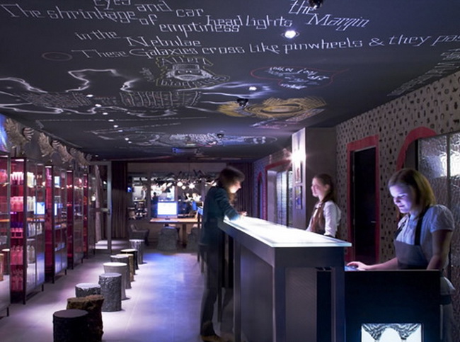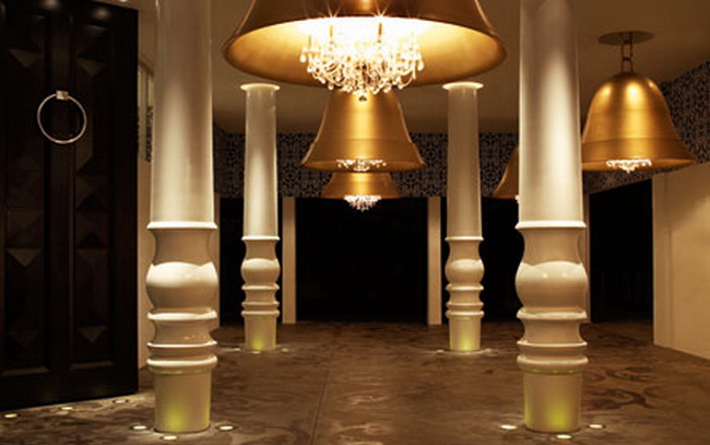 Sentuhan sihir Philippe Starck hadir di setiap sudut ruangan lobi, dari lantai, dinding, hingga langit-langit hotel yang dia ramaikan dengan kursi berbentuk tunggul pohon dari emas dan perak, tirai yang berdekorasi empat-daun cengkeh, hingga mata yang mengambang di langit-langit yang dilapisi dengan papan tulis yang penuh dengan kalimat dan diagram.
