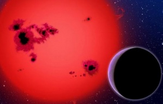 ini diperkirakan oleh Astronom seluruh permukaan planet tertutup oleh air. Mungkin saja ada kehidupan disana karena begitu banyak air. Planet yang besarnya 3 kali ukuran bumi ini terletak sekitar 40 tahun cahaya dari bumi. Foto: David A. Aguilar, CFA