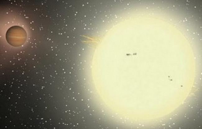 Yang ini adalah planet terbesar yang ditemukan dan dikatahui hingga saat ini. Walaupun jaraknya dengan matahari tidak sejauh planet OGLE yang hanya 1400 tahun cahaya, namun untuk masalah ukuran 1.7 x planet Jupiter. Foto: Jeffrey Hall, Lowell Observatory